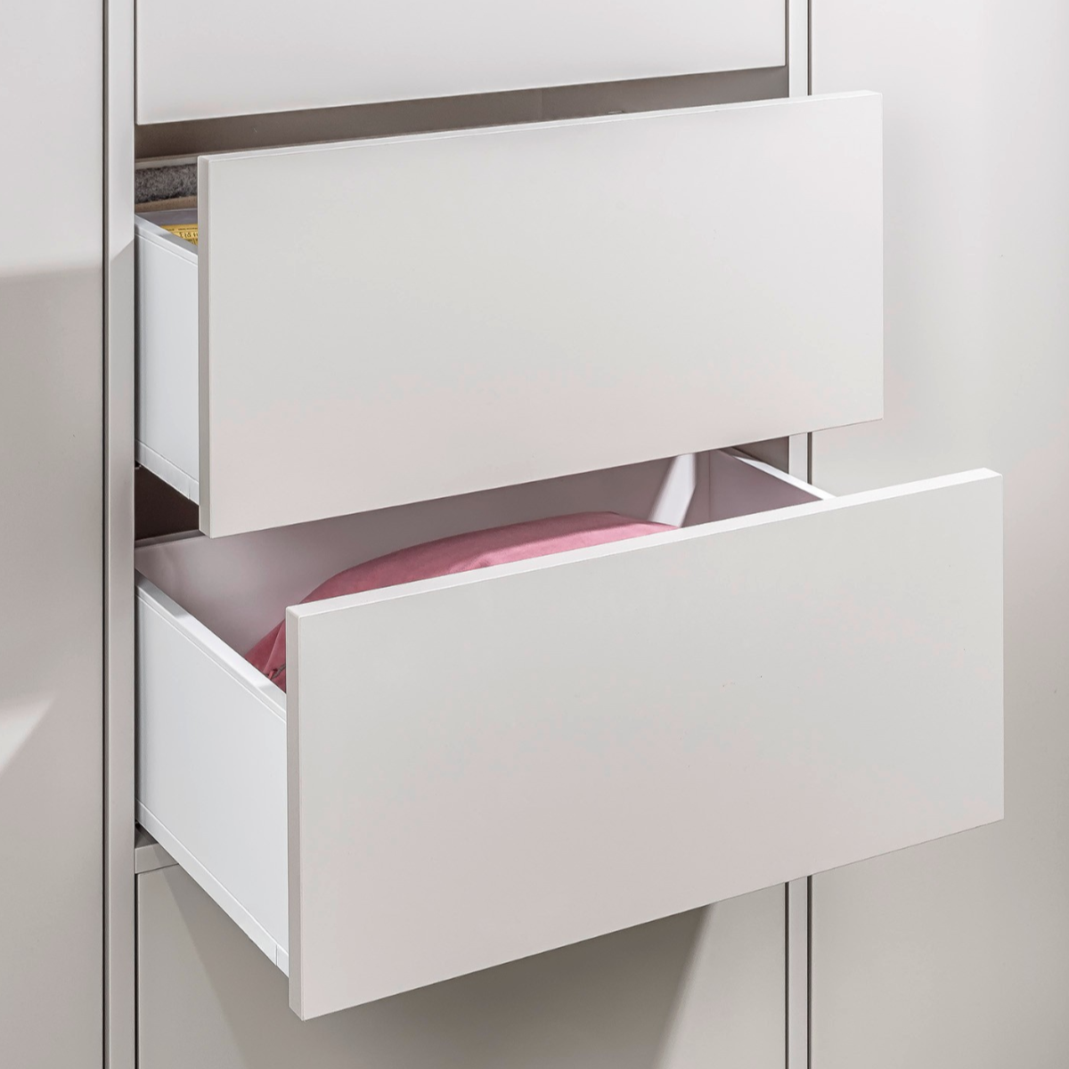 Dank der Antifingerprint-Beschichtung bleiben die Fronten auch bei intensiver Nutzung frei von sichtbaren Fingerabdrücken. Das Material ist pflegeleicht, langlebig und widerstandsfähig, wodurch es sich ideal für grifflose Möbel im Schlafzimmer, Wohnzimmer oder Homeoffice eignet.